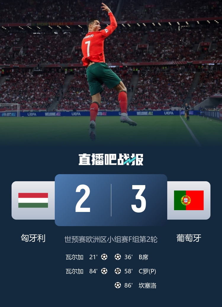 葡萄牙3-2险胜匈牙利取两连胜,C罗点射登顶世预赛历史射手榜